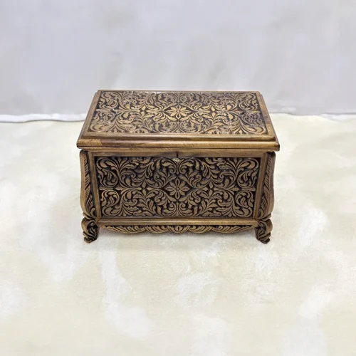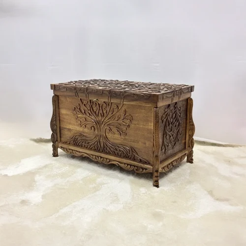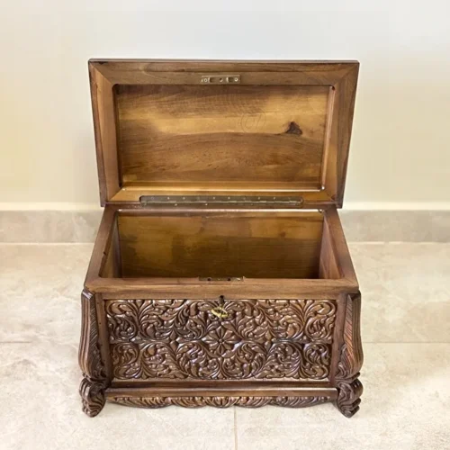 Maraş El Oyma Ceviz Ahşap Çeyiz Sandığı – 50x30x30 cm