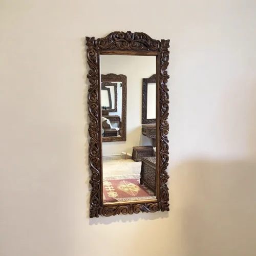Maraş El Oyma Büyük Boy Ayna – 162x73,5 cm Ceviz Ahşap Duvar Aynası