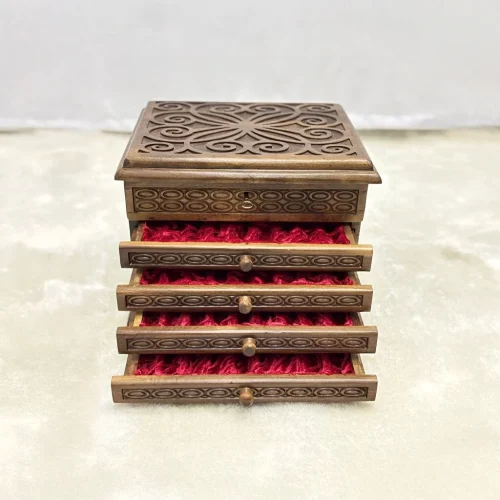 El Oyma Ceviz Ahşap Saatlik ve 4 Çekmeceli Tespih Kutusu